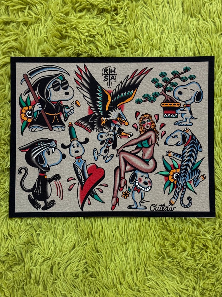 11x14 Tattoo Flash made in the USA using 100% cotton medium weight paper.